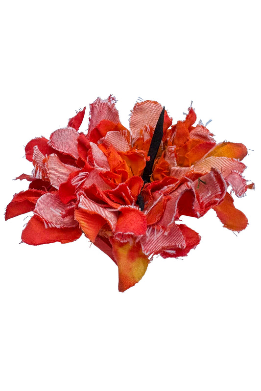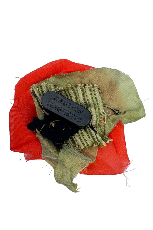 Magnetic Flower Brooch - Cotton - Red Orange