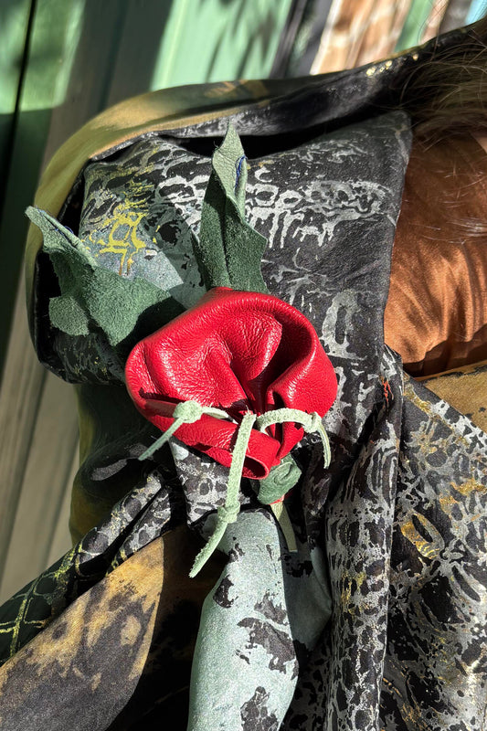 Leather Flower Magnetic Brooch - Red & Black Calla Lily