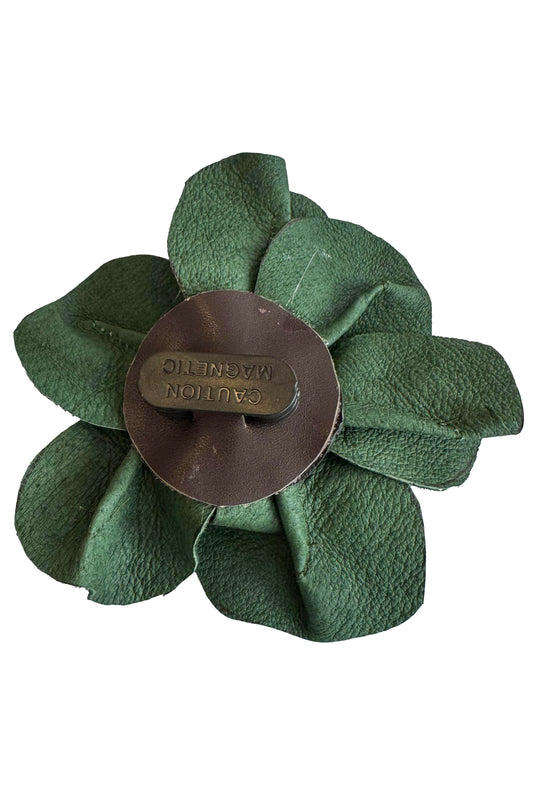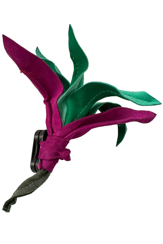 Leather Flower Magnetic Brooch - Magenta & Green Orchid