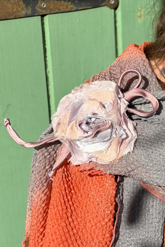 Hand Twisted Silk Rope Lariat with Flowers - Peach, Pink, Red