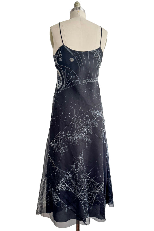 Kappa Dress in Silk - Organza Trim - Celestial Print - Black & White - Small