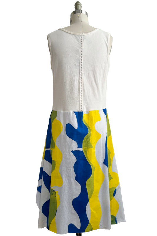 Montmartre Dress w/ Papercut Print - White, Yellow & Blue - Medium