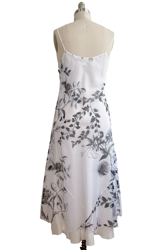 Kappa Reversible Dress in Silk - Camellia & Vine Print - White & Black - Medium