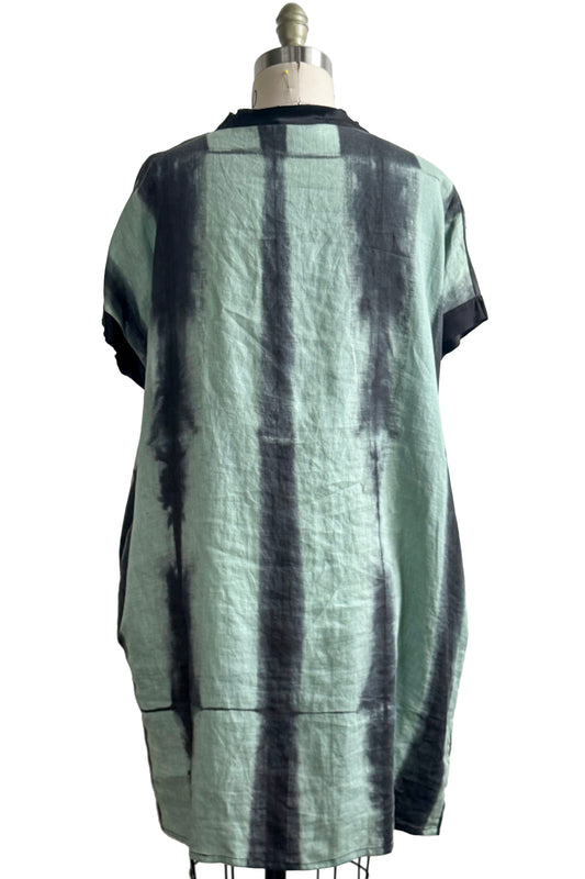 Petra Tunic in Linen w/Itajimie Dye - Charcoal & Mint Green - Medium