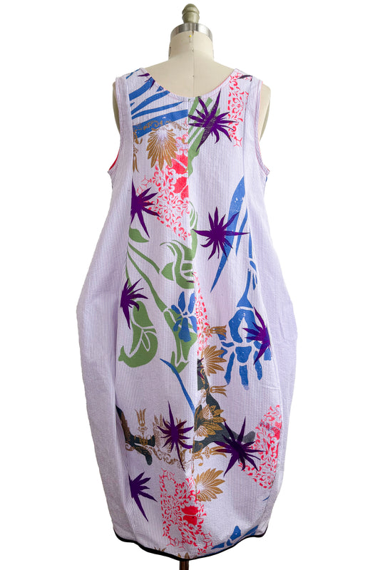 Plum Dress - Seerucker Cotton - Chaos Print - Purple, Coral, Green, Blue & Gold - Medium