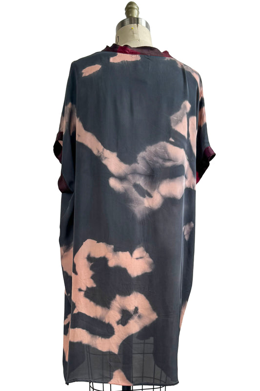 Petra Tunic Silk Georgette w/ Itajime Dye - Charcoal & Light Pink - Large