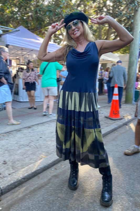 Montmartre Dress w/ Strip Skirt - Teal & Painted Blues - Medium