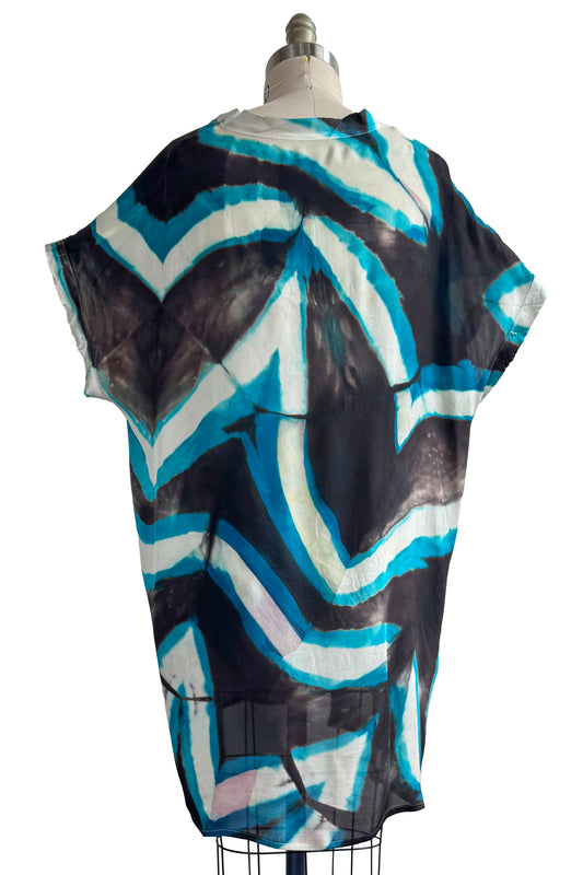 Petra Tunic Silk Georgette w/ Itajime Dye - Blue, Black & White - Medium