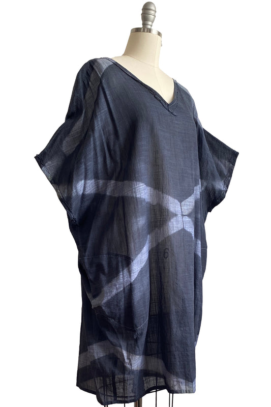 Kaftan Tunic Top w/ Itajime Dye - Grey & White