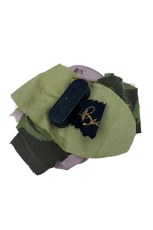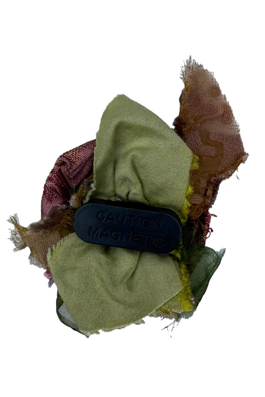 Silk Magnetic Floral Brooch - Dark Green & Mauve