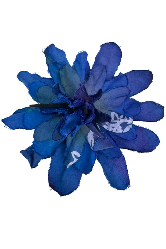 Silk & Velvet Magnetic Floral Brooch - Denim Blue