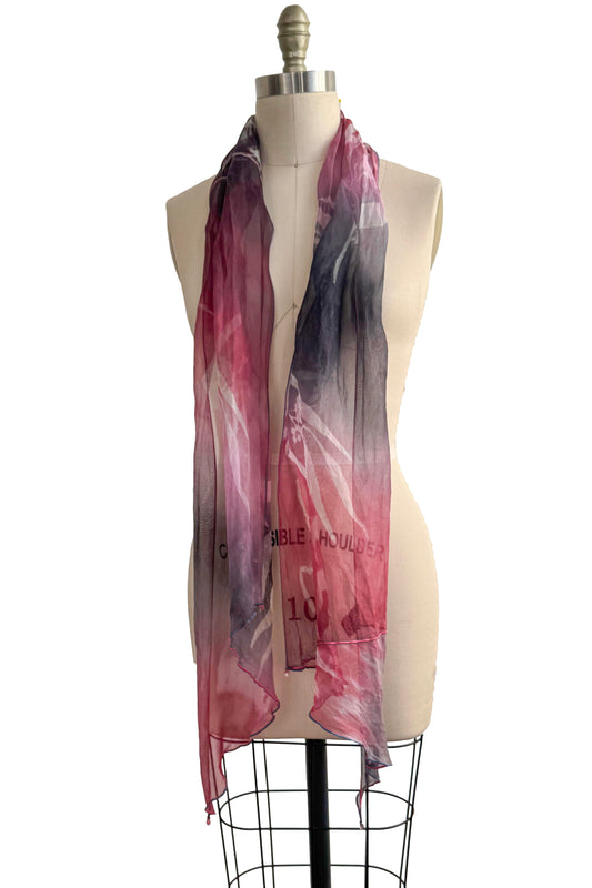 Silk Organza Scarf - Eucalyptus Print | Black, Pink & Red