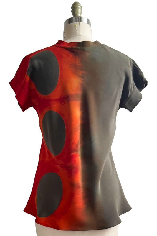 Anne-Marie Bias Top in Silk w/ Moon Print - Olive & Orange - Medium
