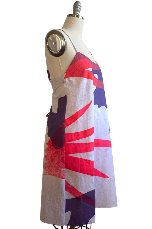 Pigalle Dress Mini | Seersucker Cotton | Flora Paper Cut Print | White, Coral & Purple | Select Size