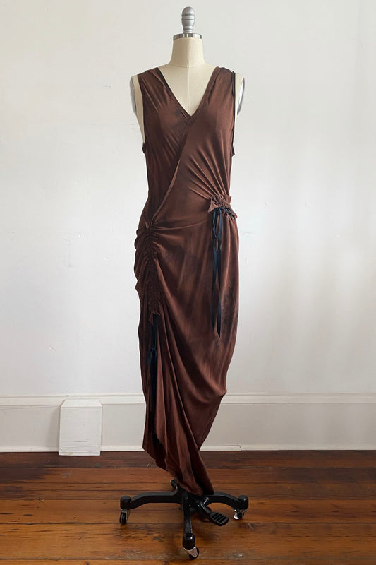 Godfrey Dress | Silk Crepe de Chine | Crunch Dyed | Sienna Brown | Large