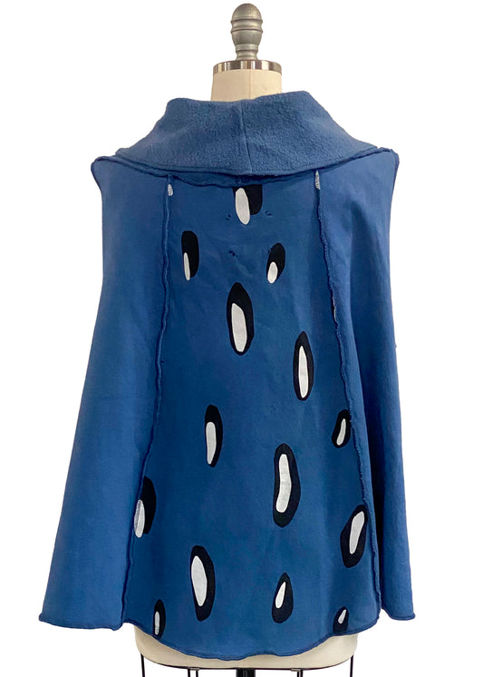 Poncho with Silk Bias Neckline - Open Weave Linen - Itajime Shibori Circle Dye - Black, Pink & Purple