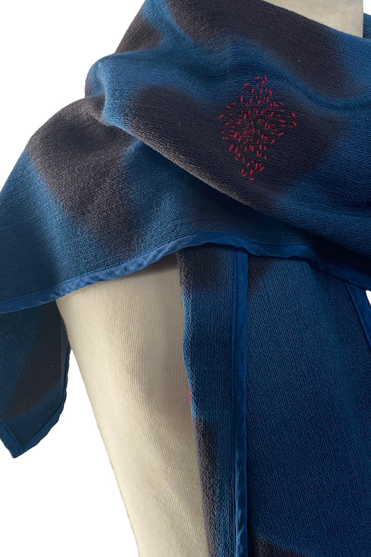 Shawl w/ Bias Trim | Italian Wool | Itajime Dyed & Sachiko Stitching | Teal, Black & Red