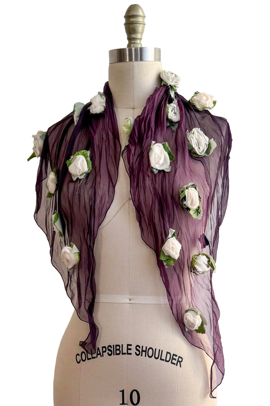 Flower Scarf | Crinkled Silk Organza | Purple & White