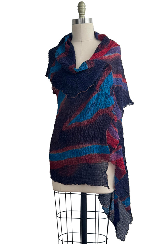 Asymmetrical Wrap Vest - Bubble Silk - Shibori Dye - Navy, Turquoise & Red