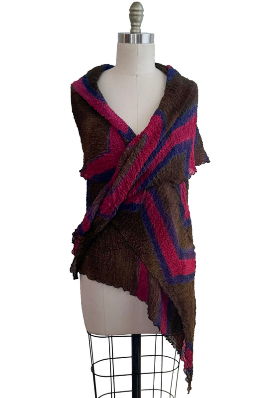 Asymmetrical Wrap Vest - Bubble Silk - Shibori Dye - Olive, Magenta & Blue