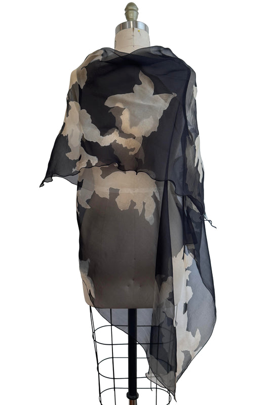 Asymmetrical Wrap Vest Organza - Azalea Print - Black & Natural