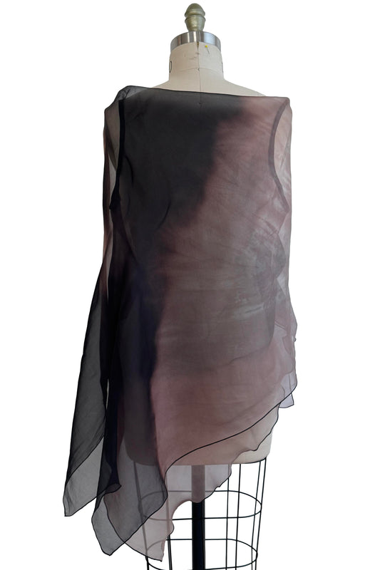 Asymmetrical Wrap Vest Organza - Black & Natural