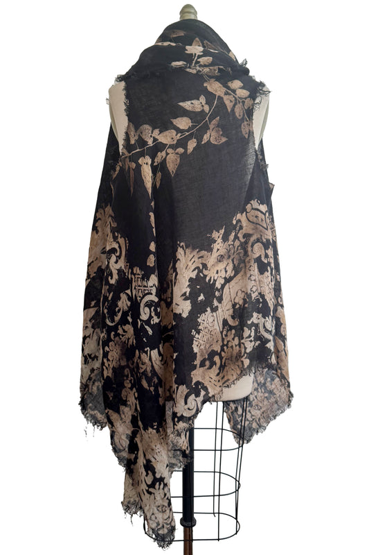 Asymmetrical Wrap Vest in Linen - Wallpaper & Vine Print - Black & Natural