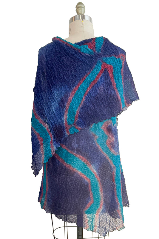 Asymmetrical Wrap Vest | Bubble Silk | Itajime Dye | Navy, Turquoise & Red