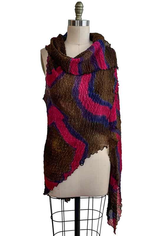 Asymmetrical Wrap Vest | Bubble Silk | Itajime Dye | Olive, Magenta & Blue
