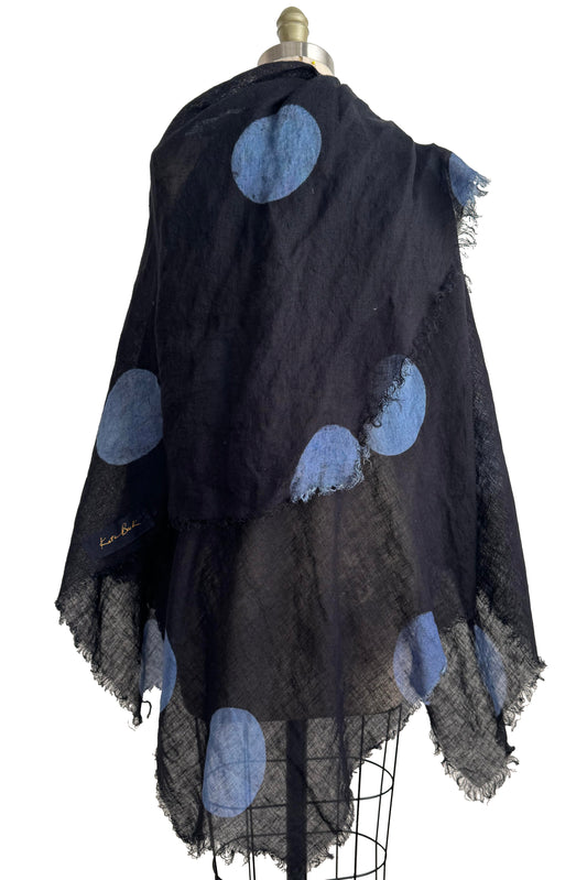 Asymmetrical Wrap Vest | Open Weave Linen | Moon Dot Print Overdye | Black & Blue