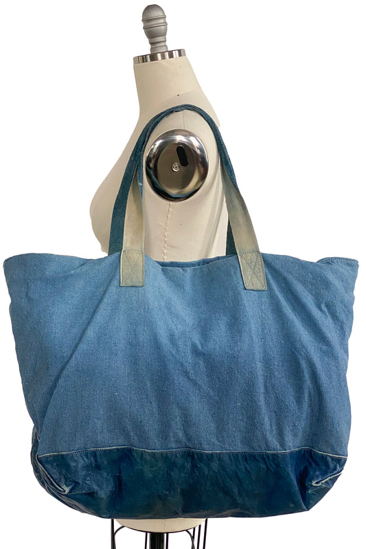 Tote w/ Leather - Indigo Dyed - SAMPLE
