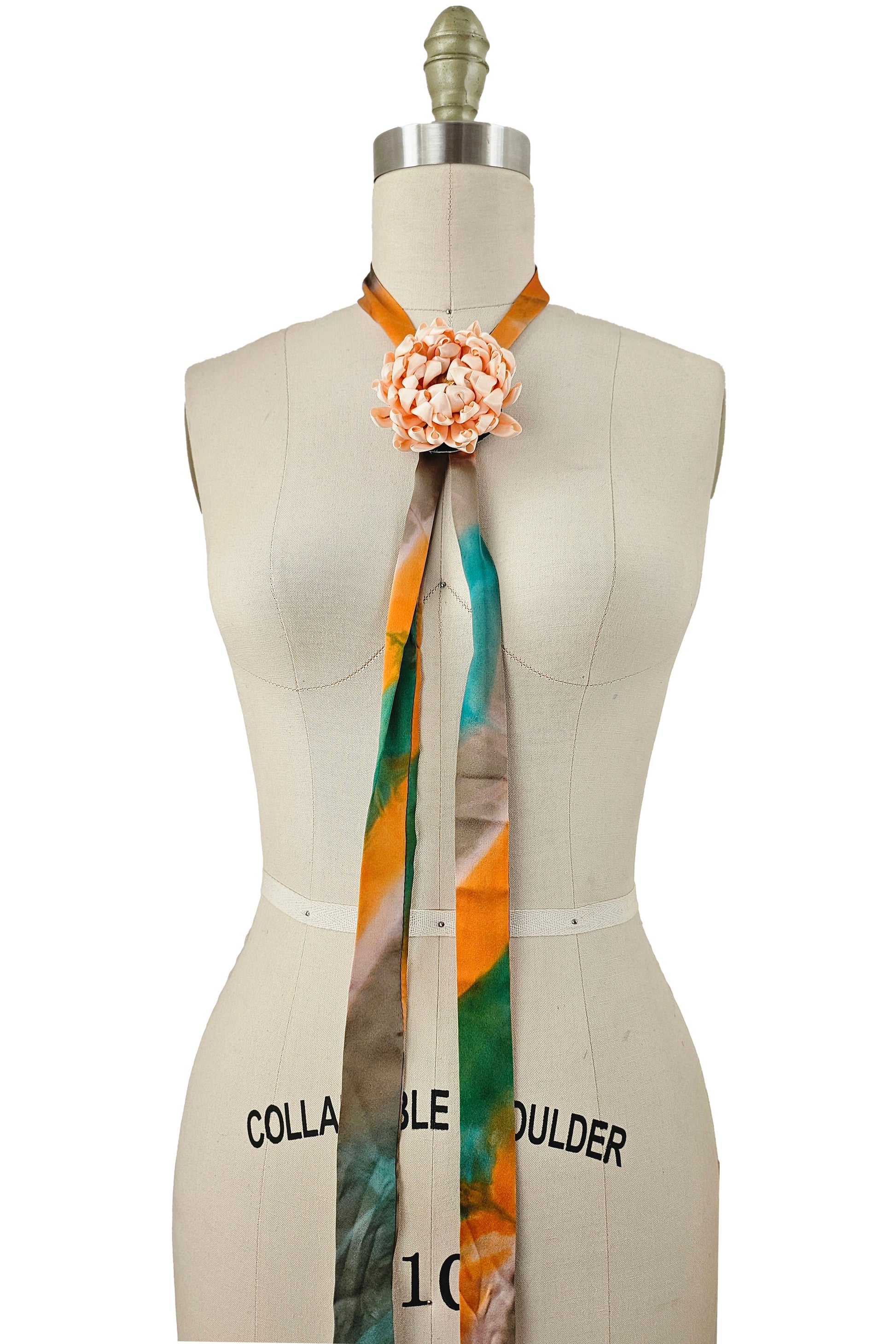Adriana Silk Bolo Tie Necklace | Peach Tsumami Chrysanthemum