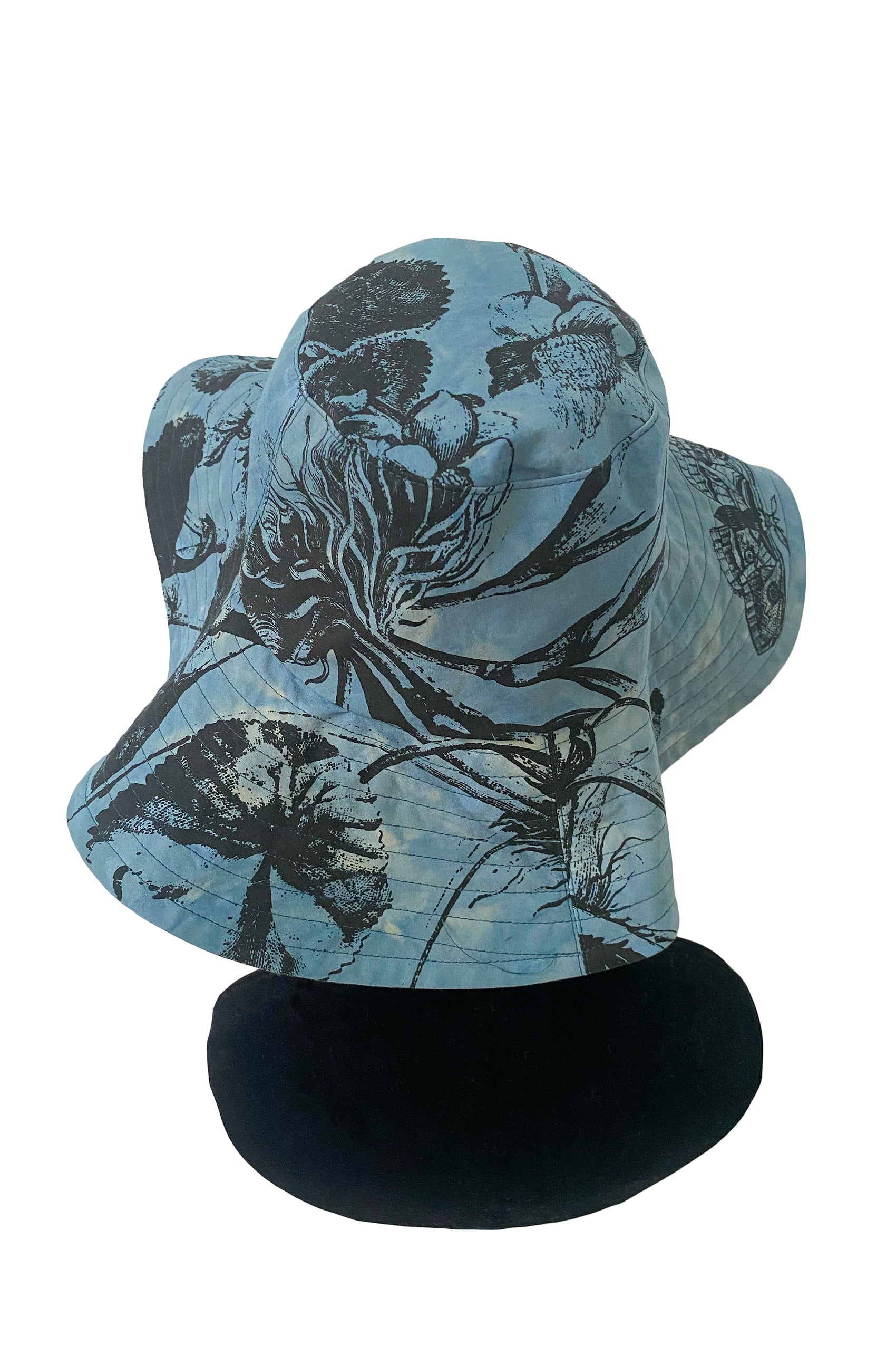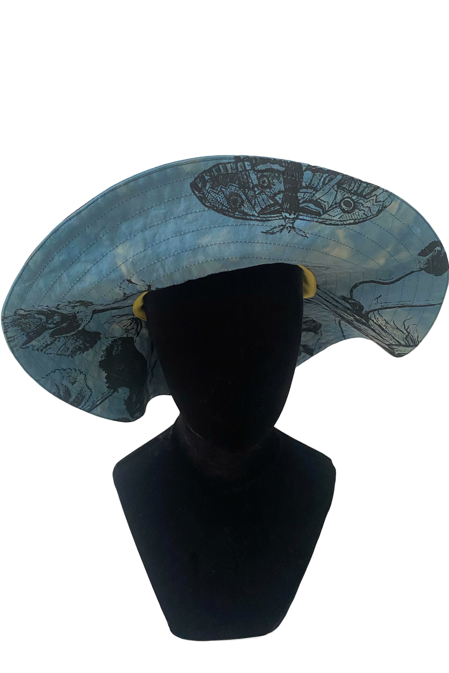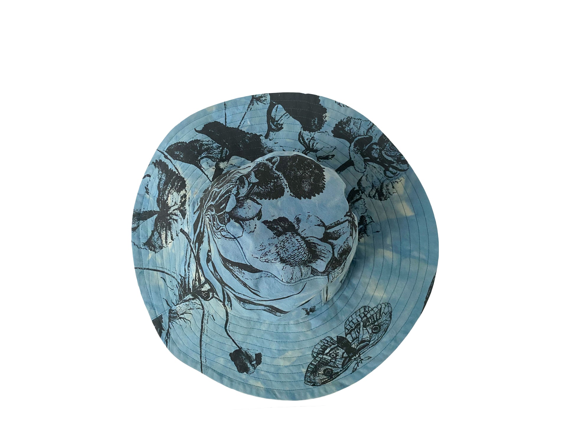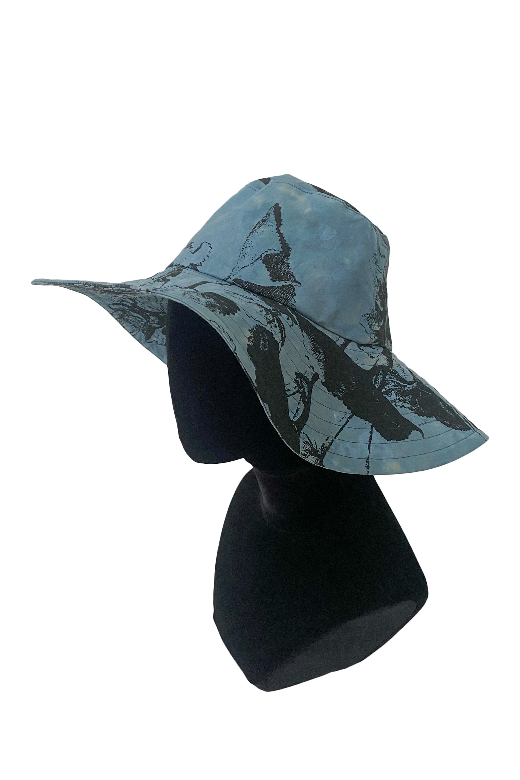Amalfi Wide Brim Hat - Marsh Garden Print - Indigo & Black