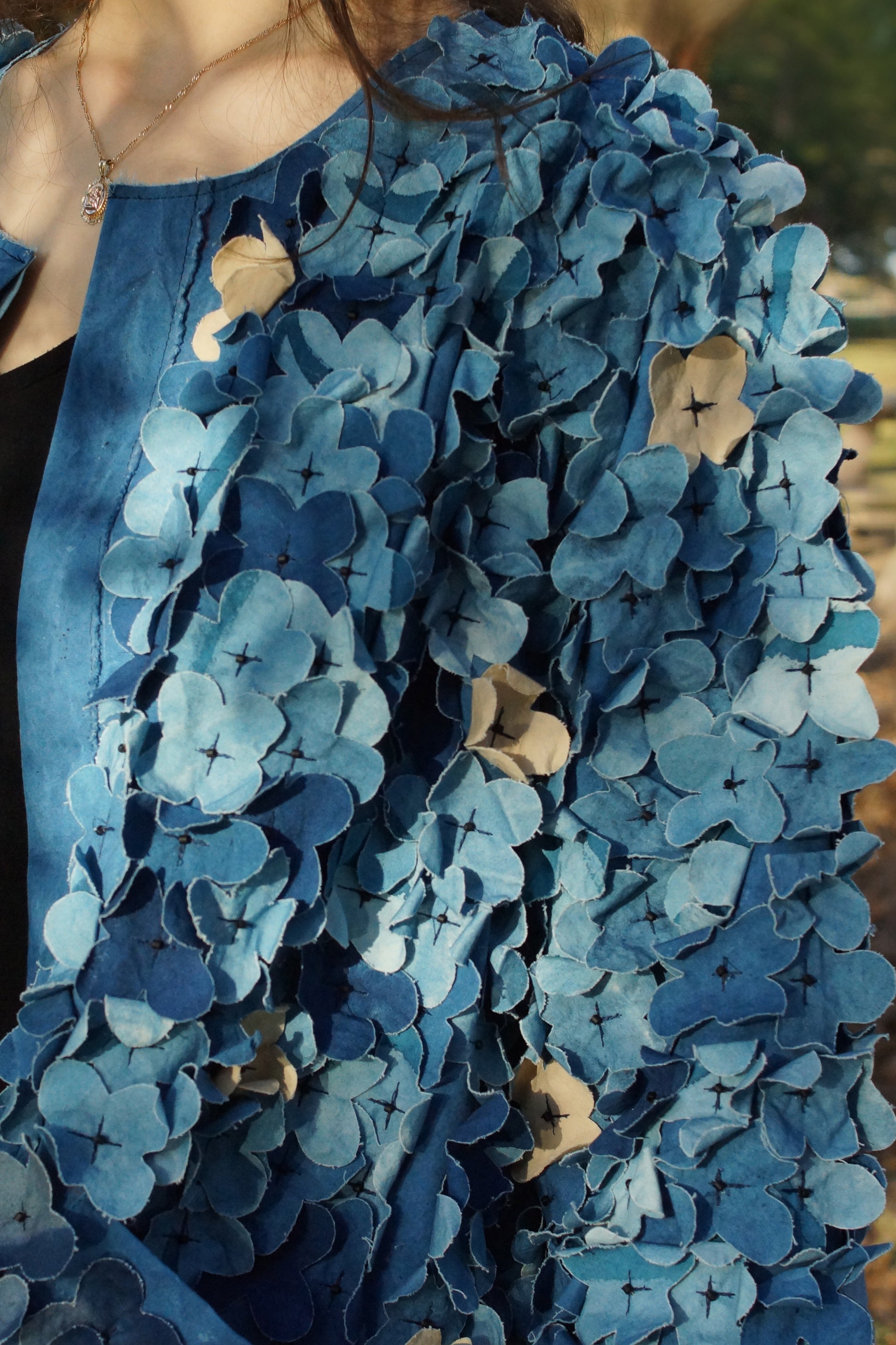 Ariel Jacket in Cotton w/ Floral Applique - Indigo - Large