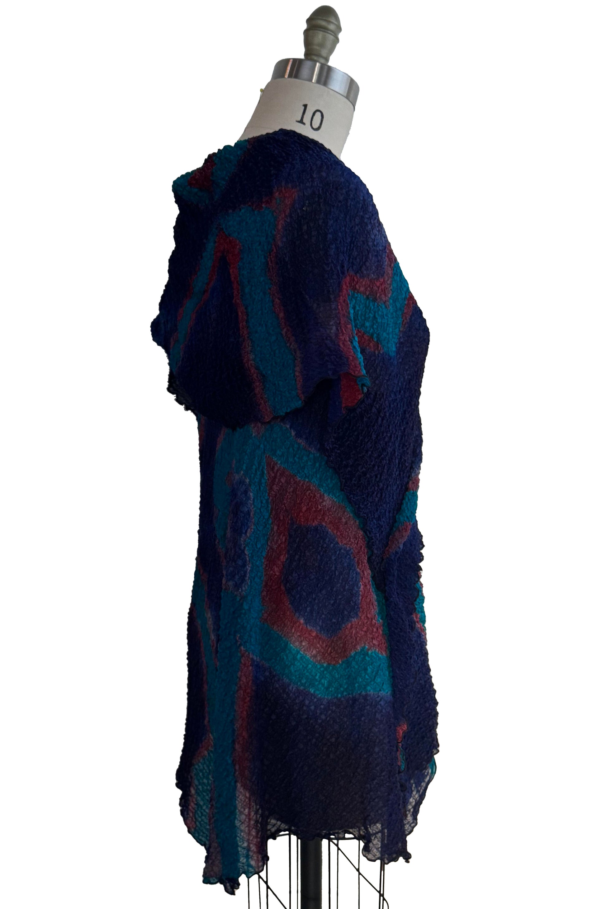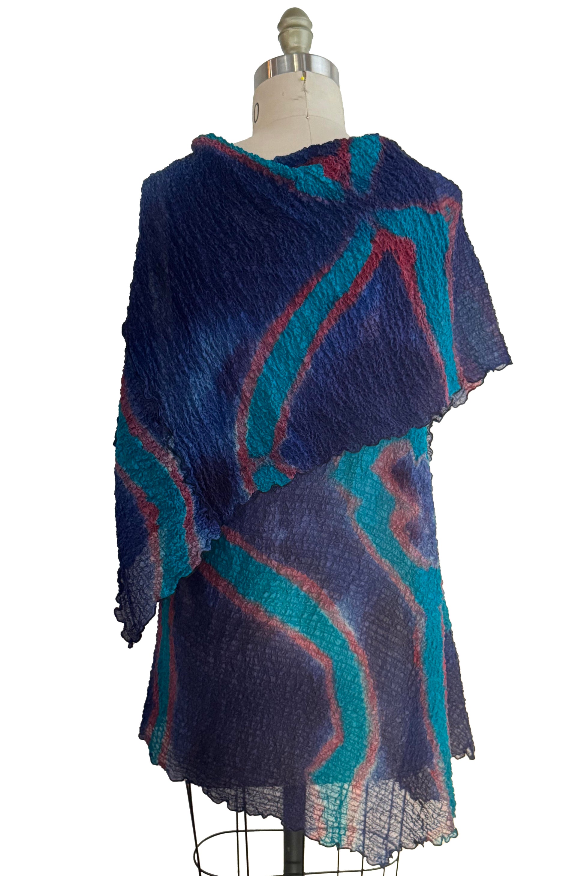 Asymmetrical Wrap Vest - Bubble Silk - Shibori Dye - Navy, Turquoise & Red