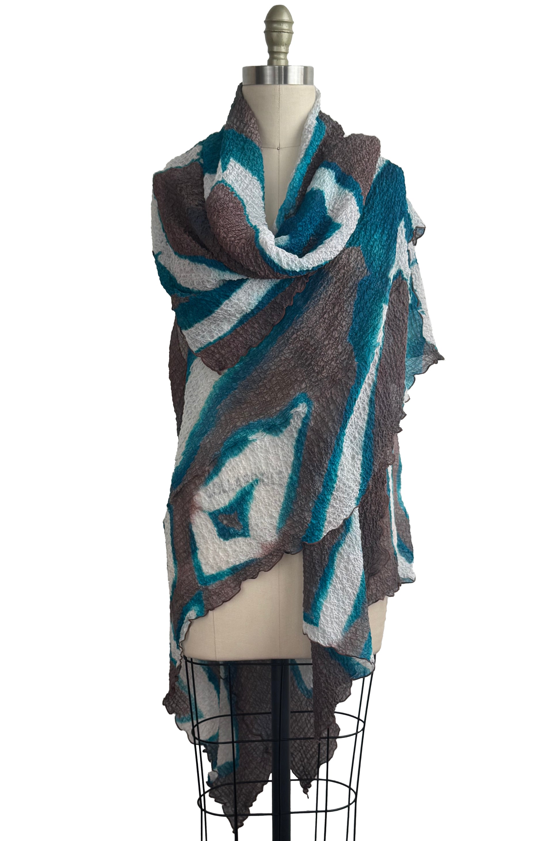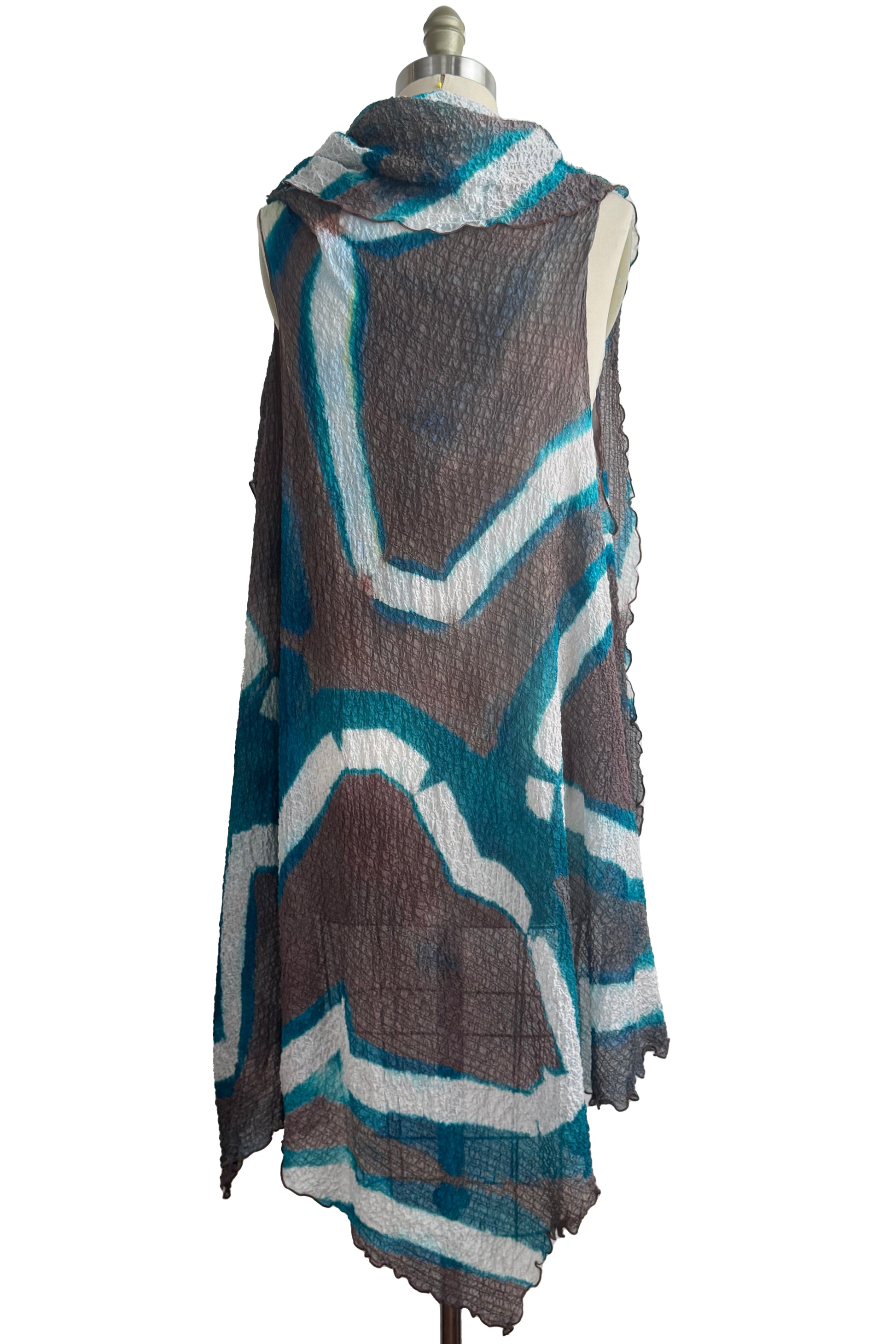 Asymmetrical Wrap Vest - Waffle Silk - Itajime Dye - Turquoise, White & Taupe