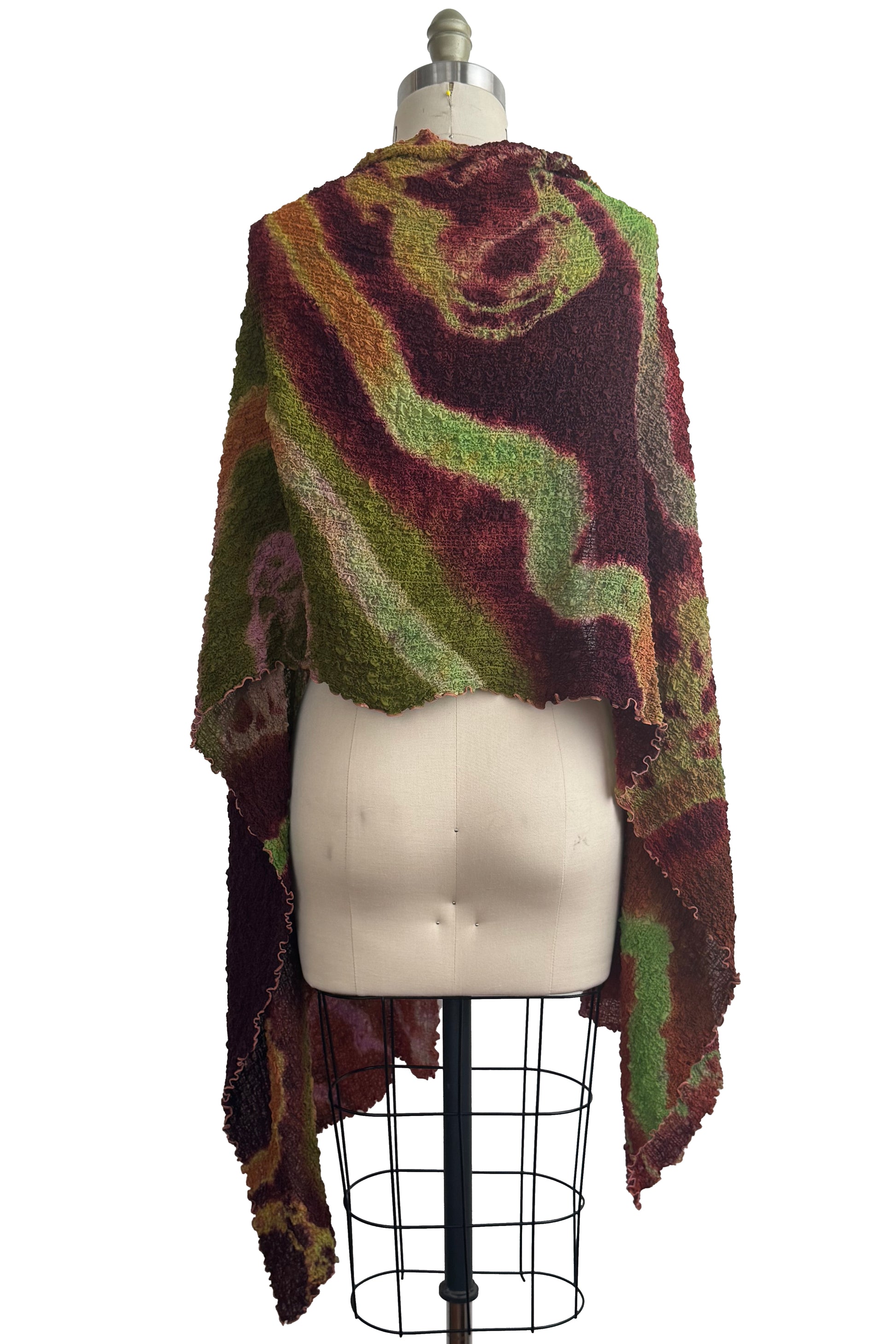 Bubble Silk Shawl - River Dye - Lime Green, Rust, Olive Green, & Maroon