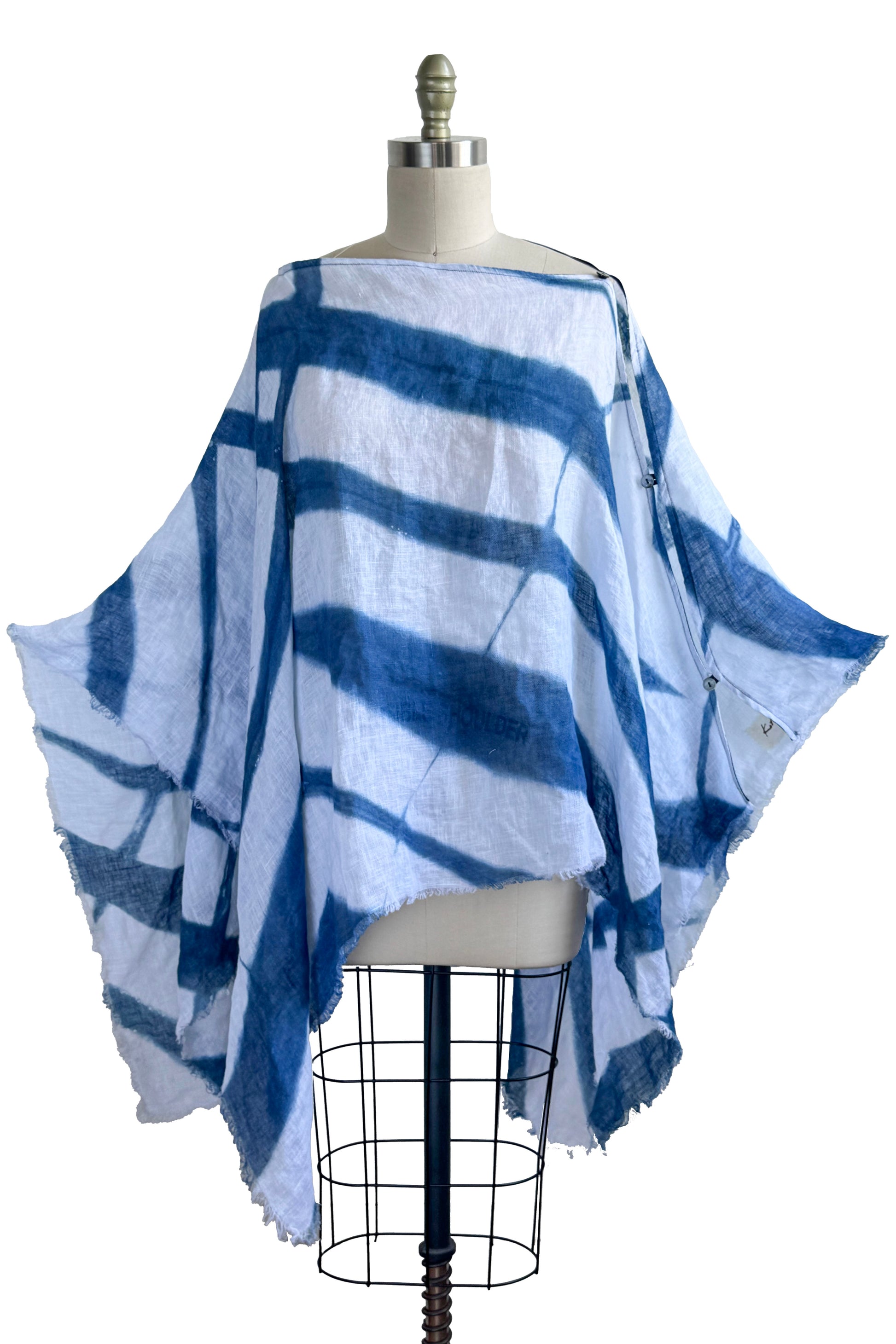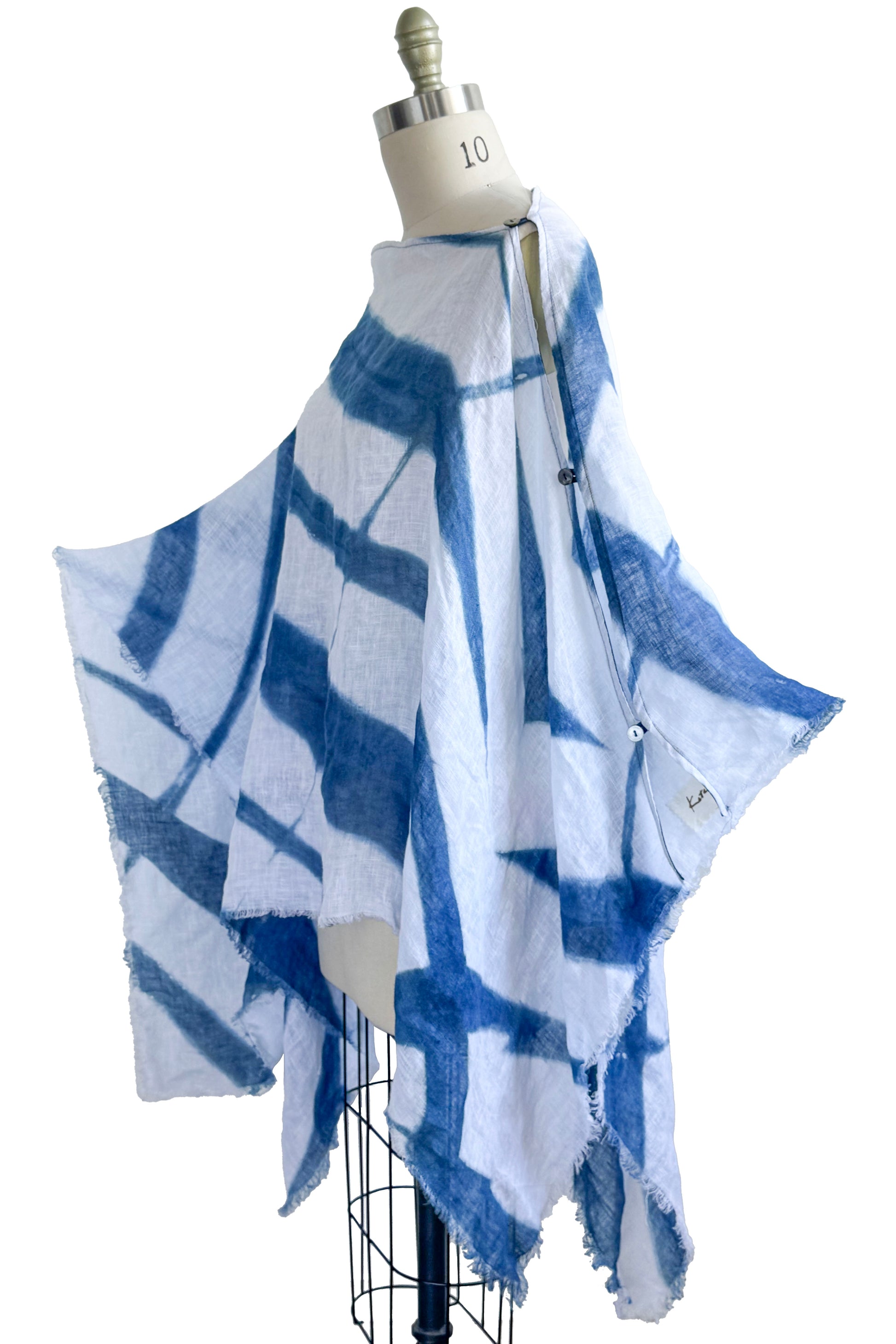 Button Drape in Linen w/ Shibori Dye - Indigo & White