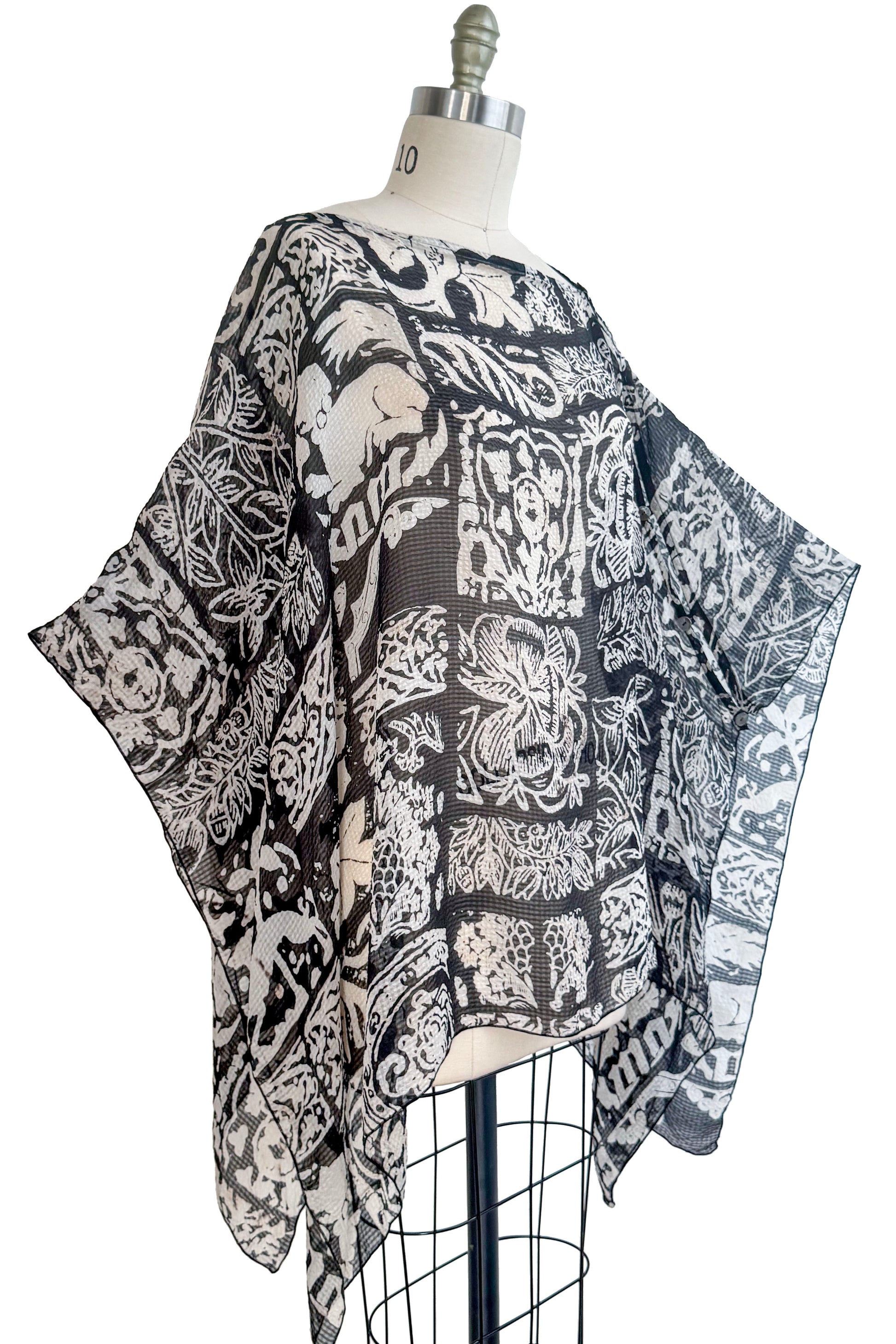 Button Drape in Seersucker Silk - Tile Print - Black & White