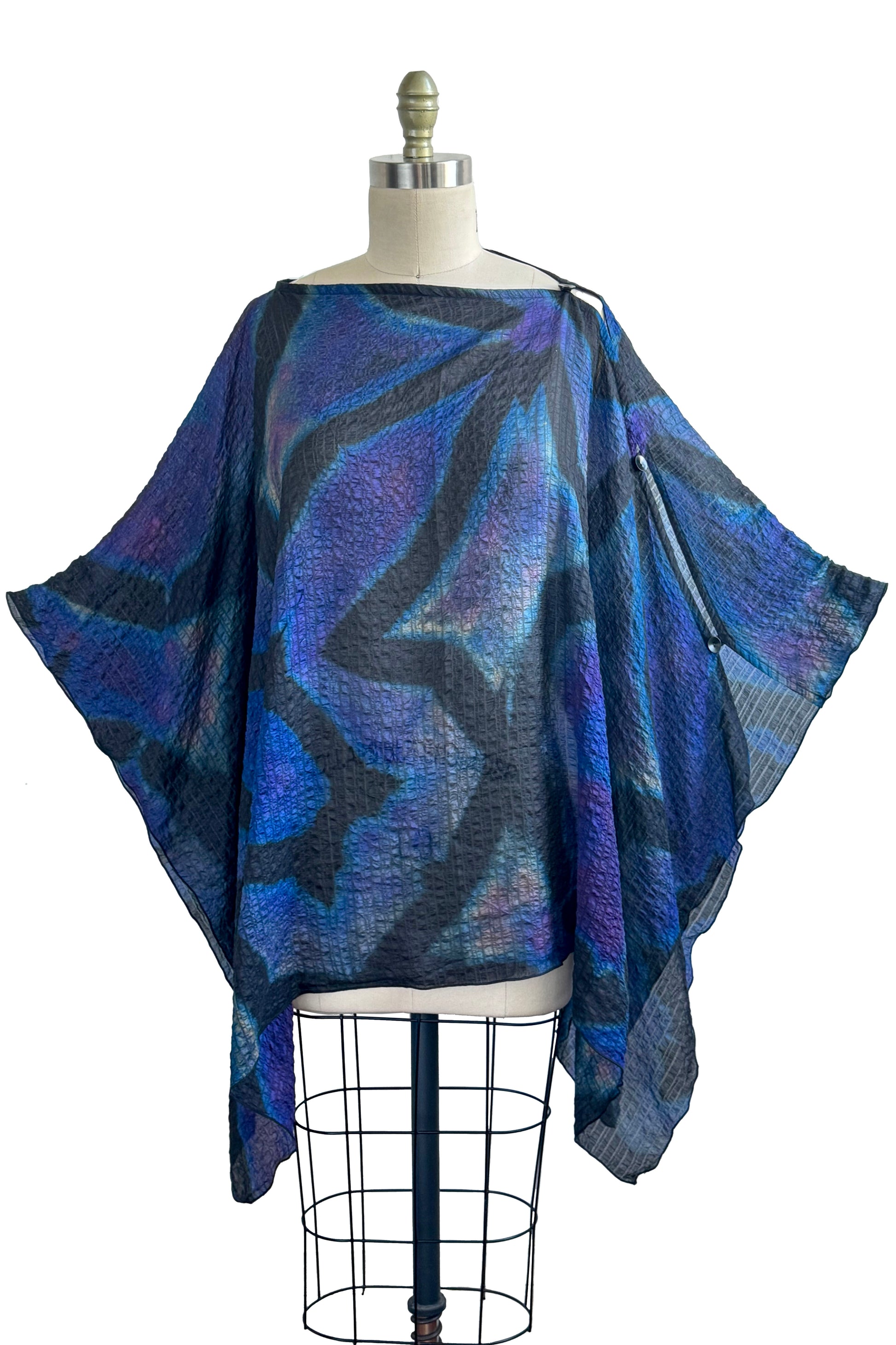 Button Drape in Seersucker Silk w/ Shibori Dye - Black, Blue & Violet