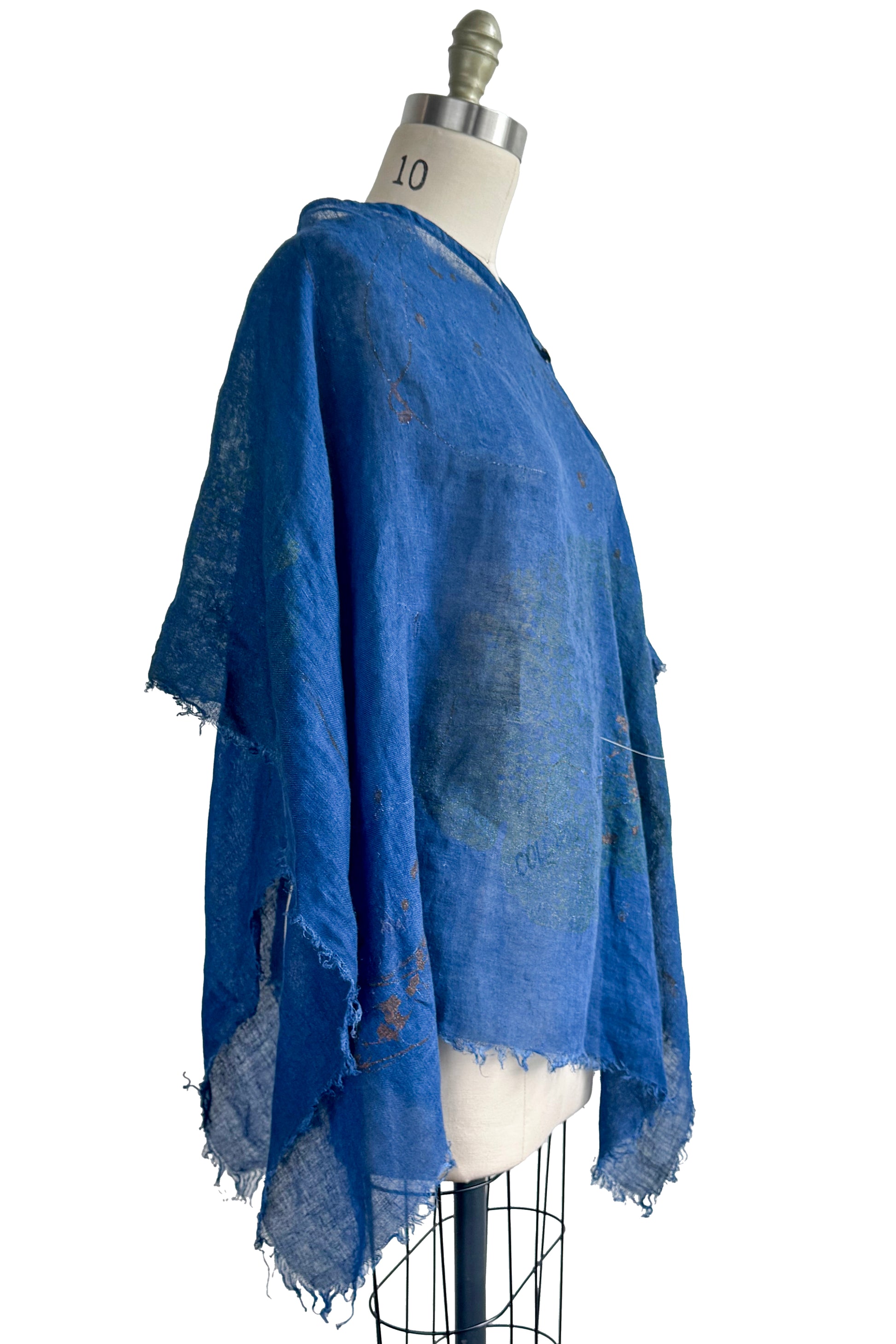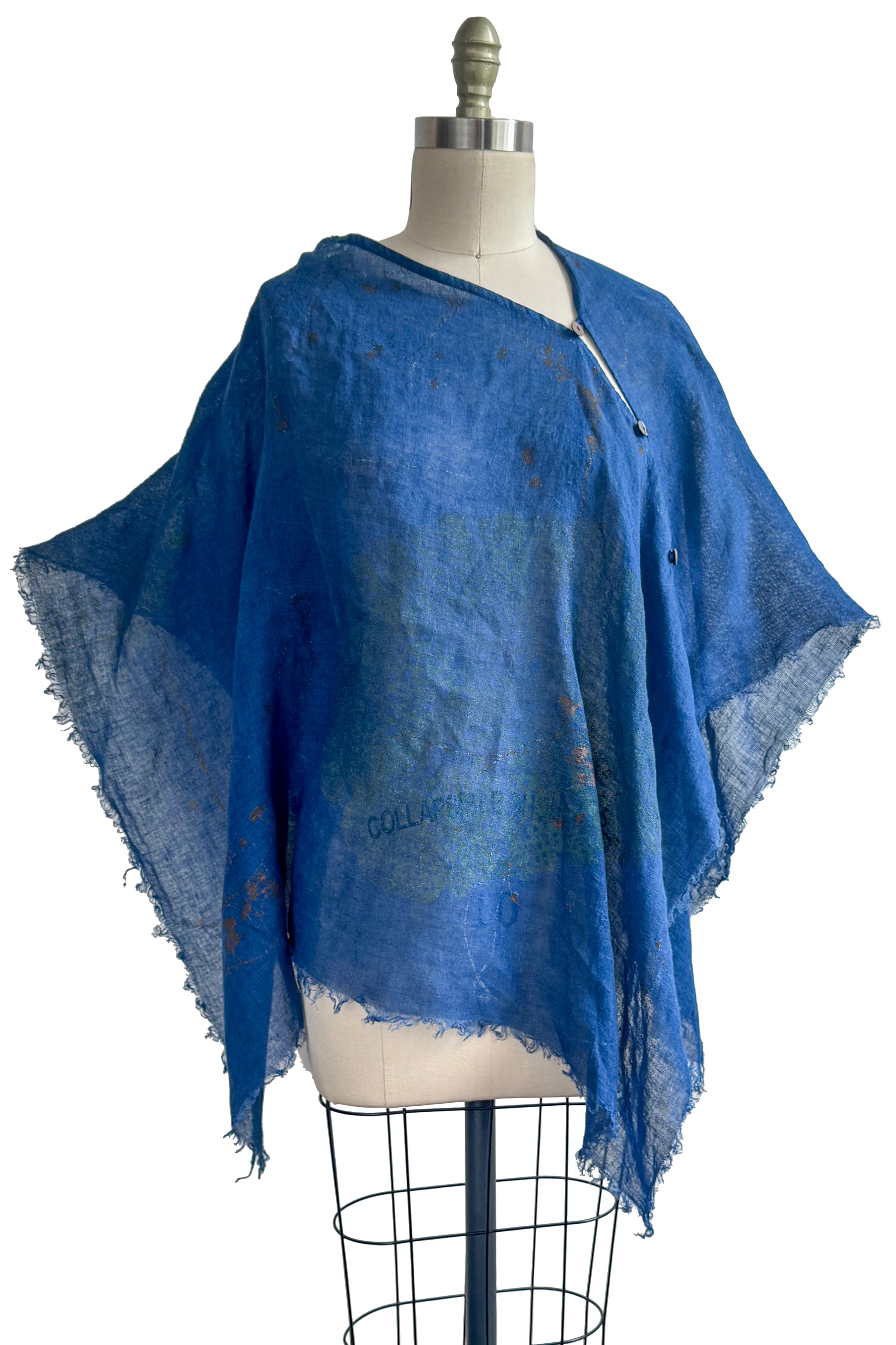 Light as air and full of movement, this poncho-style wrap is crafted from soft, textured linen and features an original hand-dyed design.