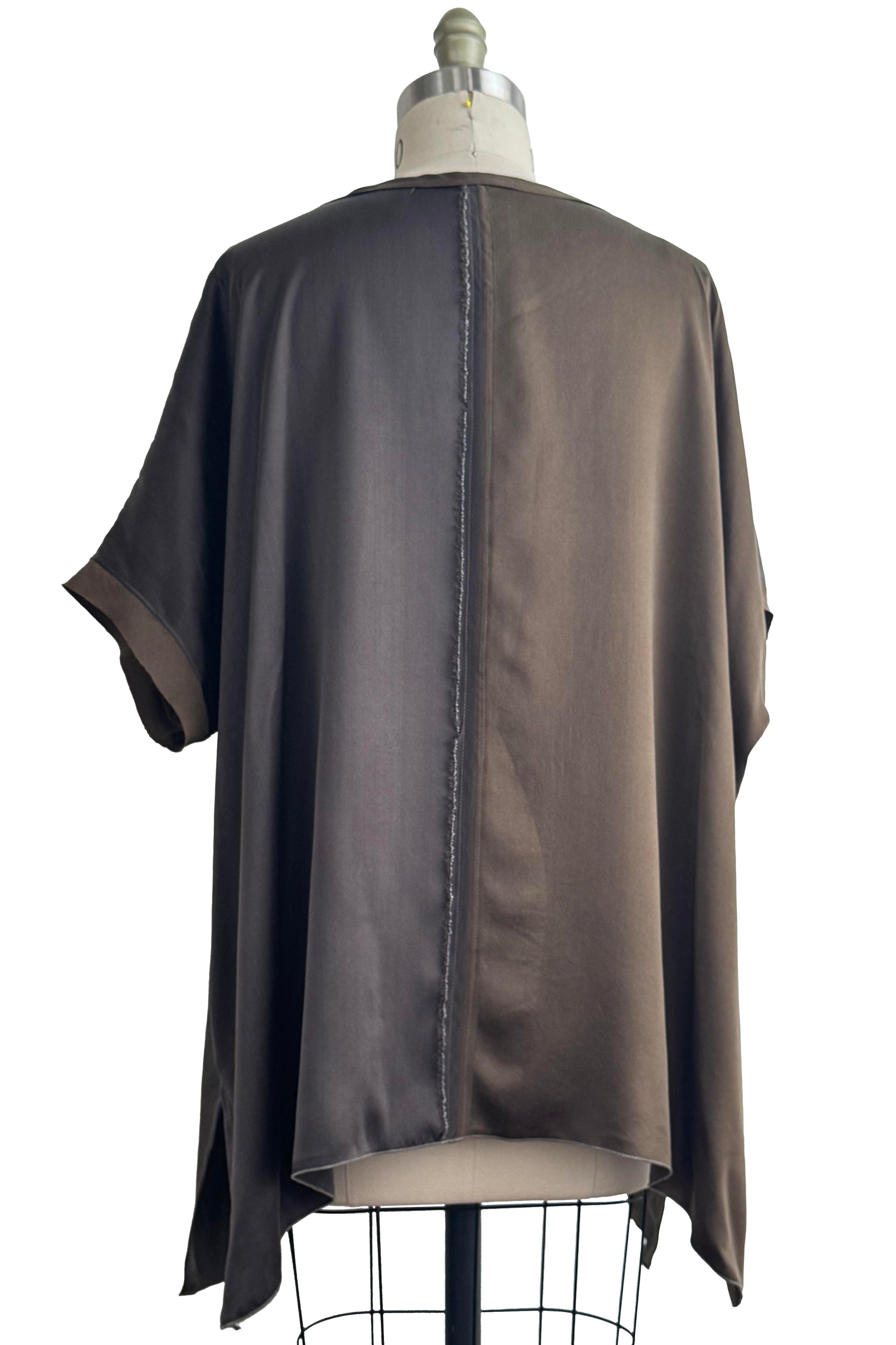 Deb Top | Silk Charmeuse | Painted Dye | Olive Green & Slate Grey