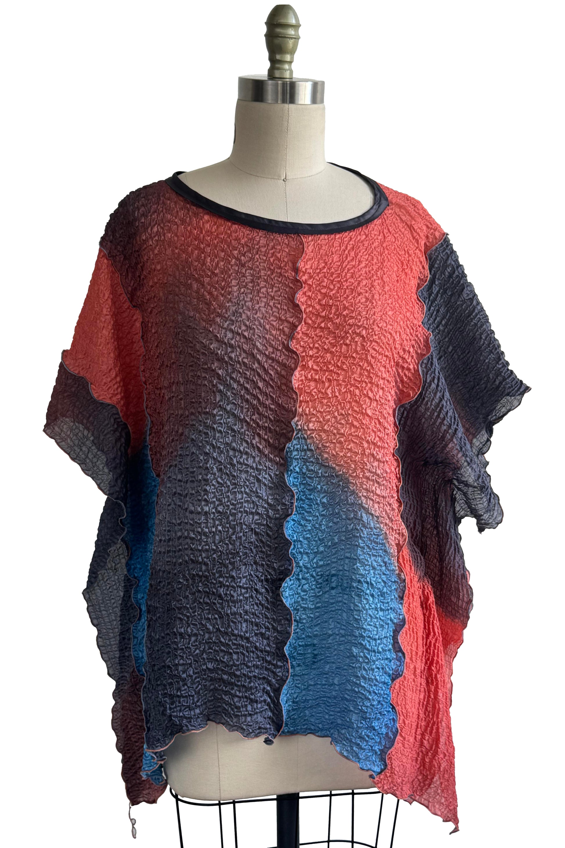 Deb Top - Textured Silk - Ombre Dyed - Black, Blue & Red
