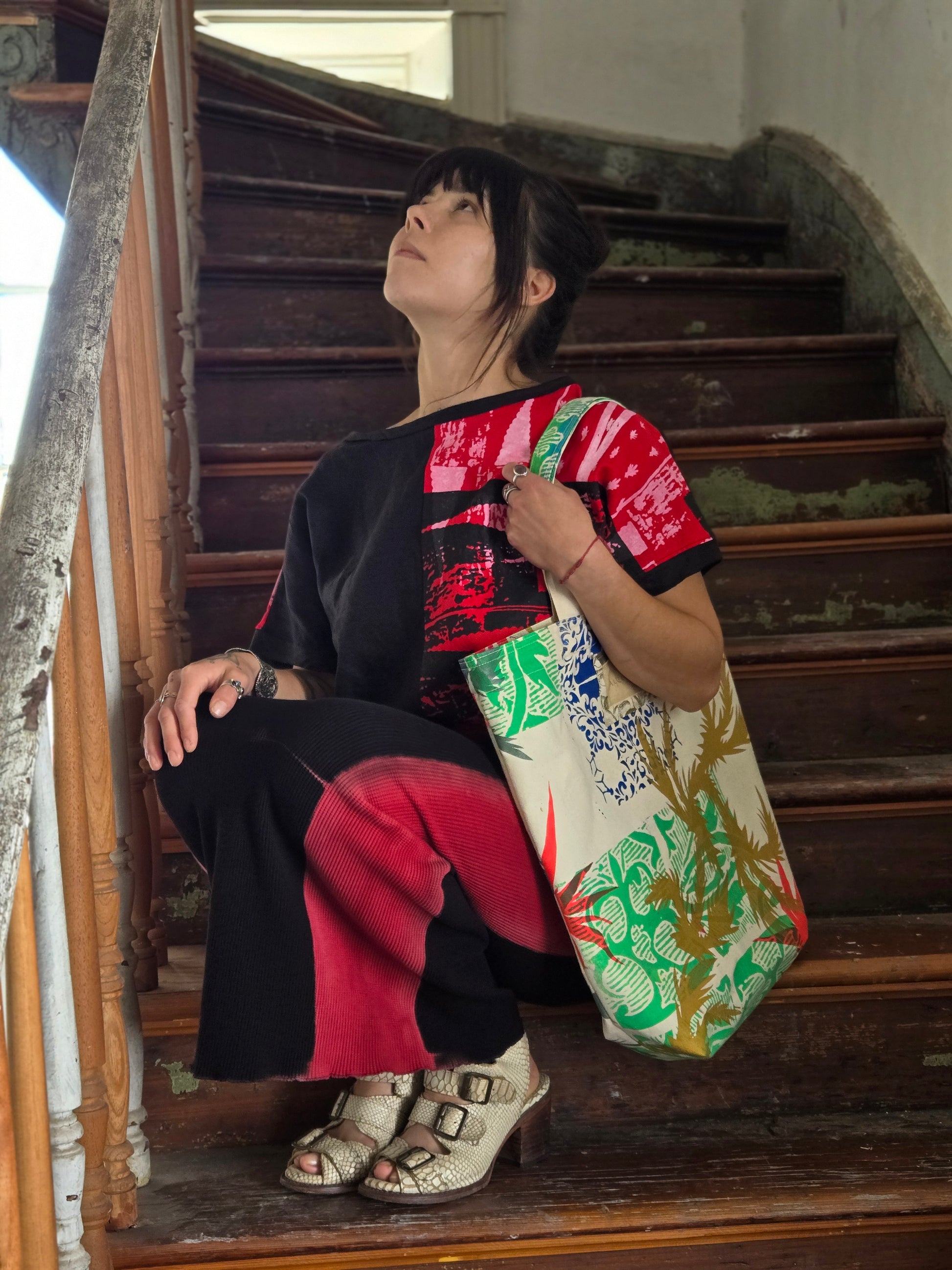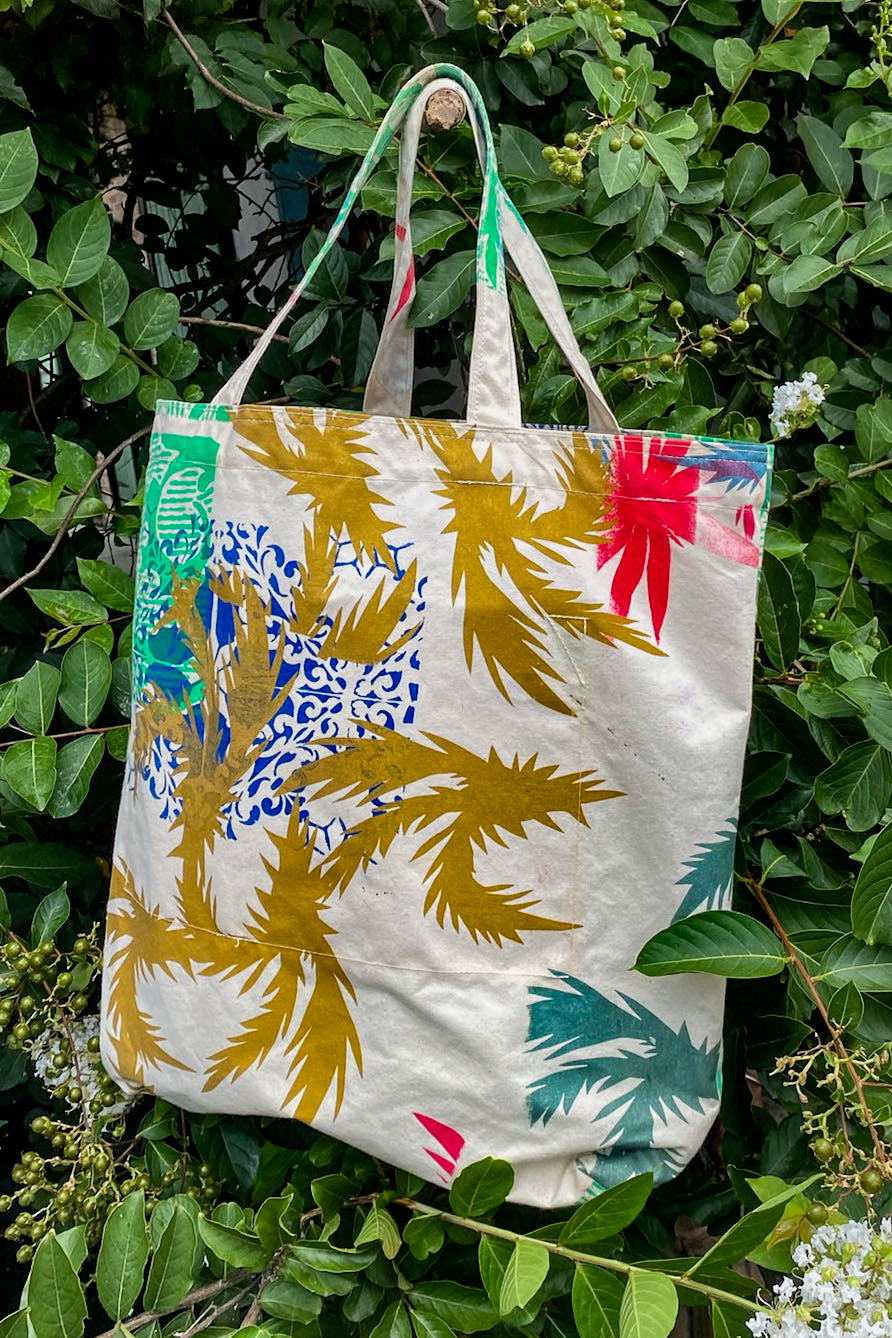 Crafted from remnants of our garment-cutting process, each canvas tote is hand-dyed and/or hand-printed in our studio. Durable, lightweight, and one of a kind—designed for everyday use with less waste and more color.