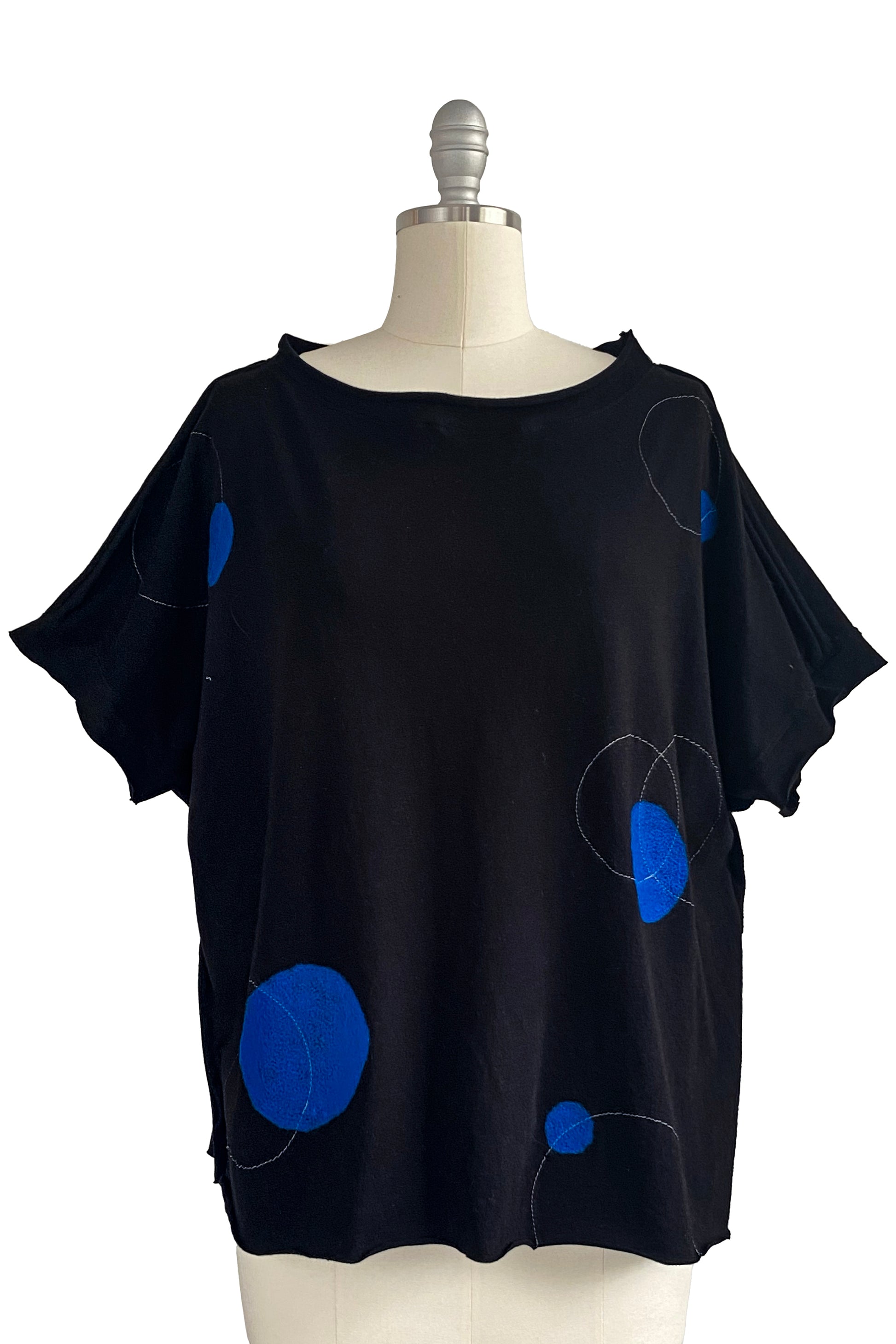 Jen Top - Jersey - Felted Circle & Stitching - Black & Blue - Large