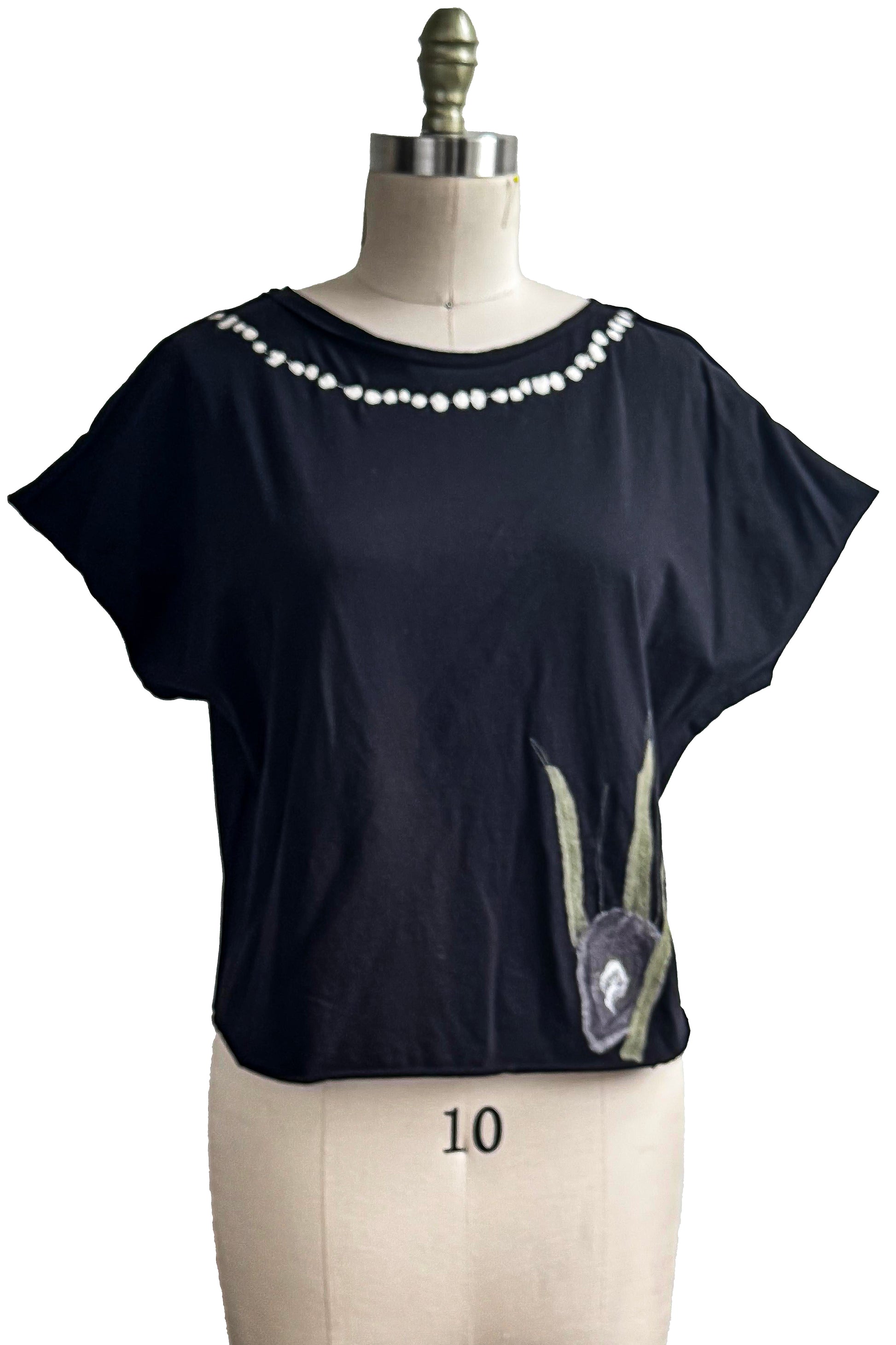 This handcrafted top is made from soft, breathable fabric with a relaxed silhouette. With wide-cut sleeves and a fluid fit, this piece is both effortless and artful—perfect for layering or wearing on its own. A one-of-a-kind garment, blending textile artistry with everyday wearability.