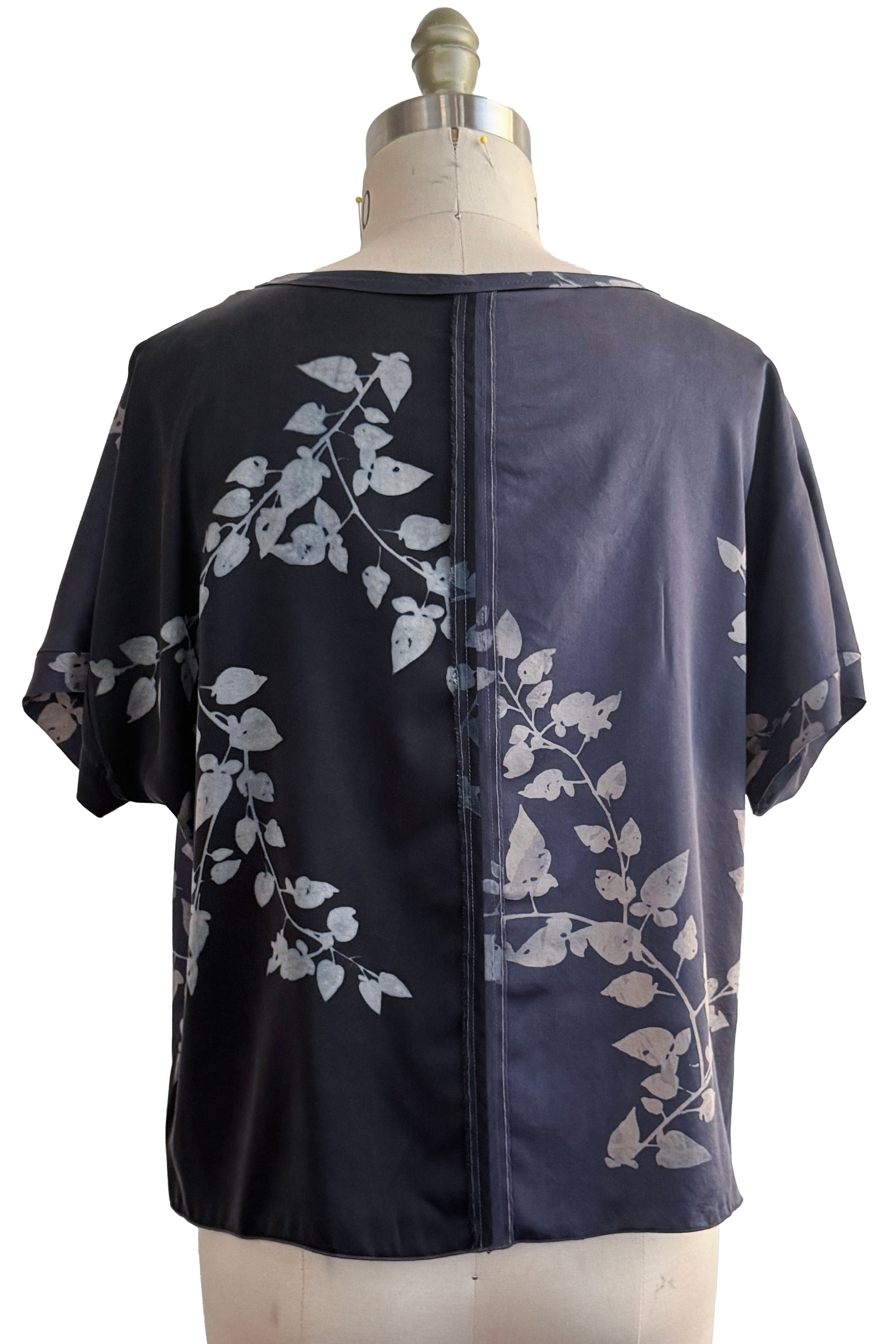 Jen Top Silk Charmeuse - Vine Print - Grey & Natural - Medium