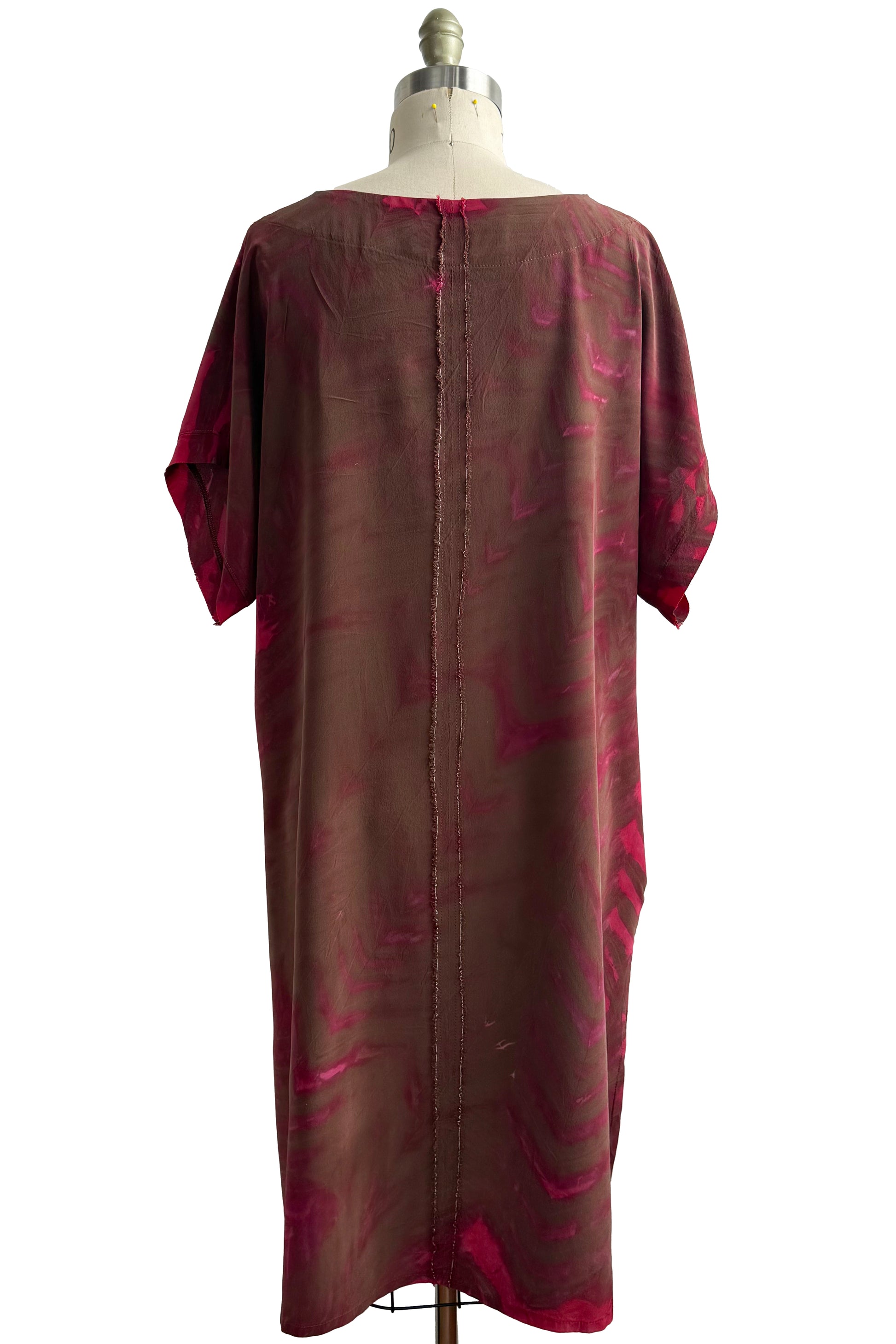 Kaftan Dress Short Sleeve w/ Shibori Arashi Dye - Brown & Pink - Large