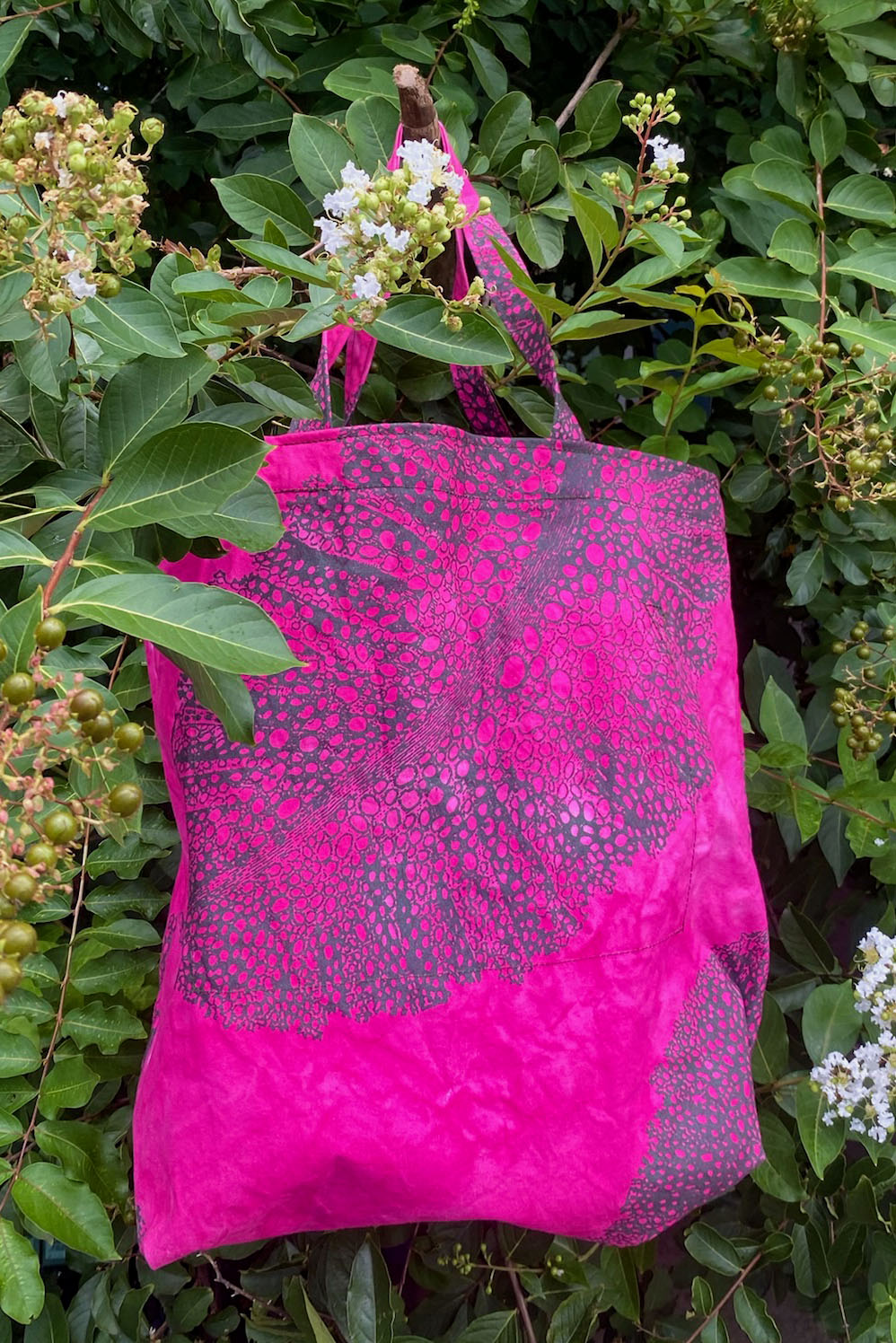 Crafted from remnants of our garment-cutting process, each canvas tote is hand-dyed and/or hand-printed in our studio. Durable, lightweight, and one of a kind—designed for everyday use with less waste and more color.