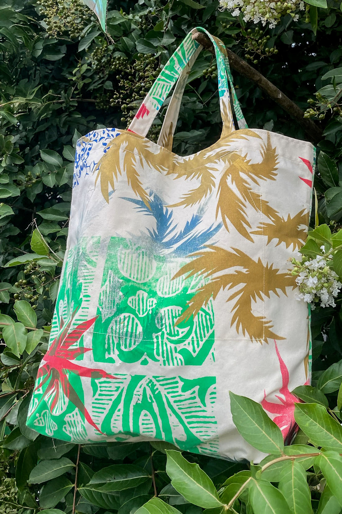 Crafted from remnants of our garment-cutting process, each canvas tote is hand-dyed and/or hand-printed in our studio. Durable, lightweight, and one of a kind—designed for everyday use with less waste and more color.